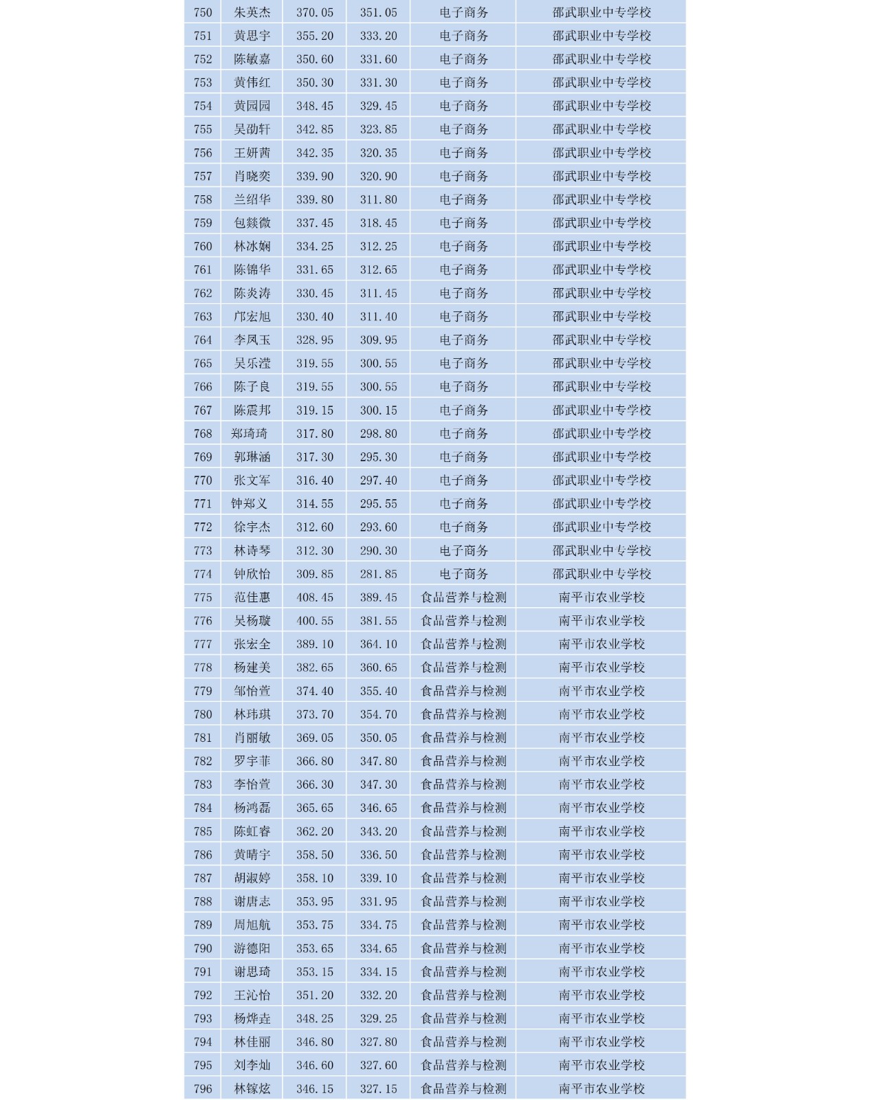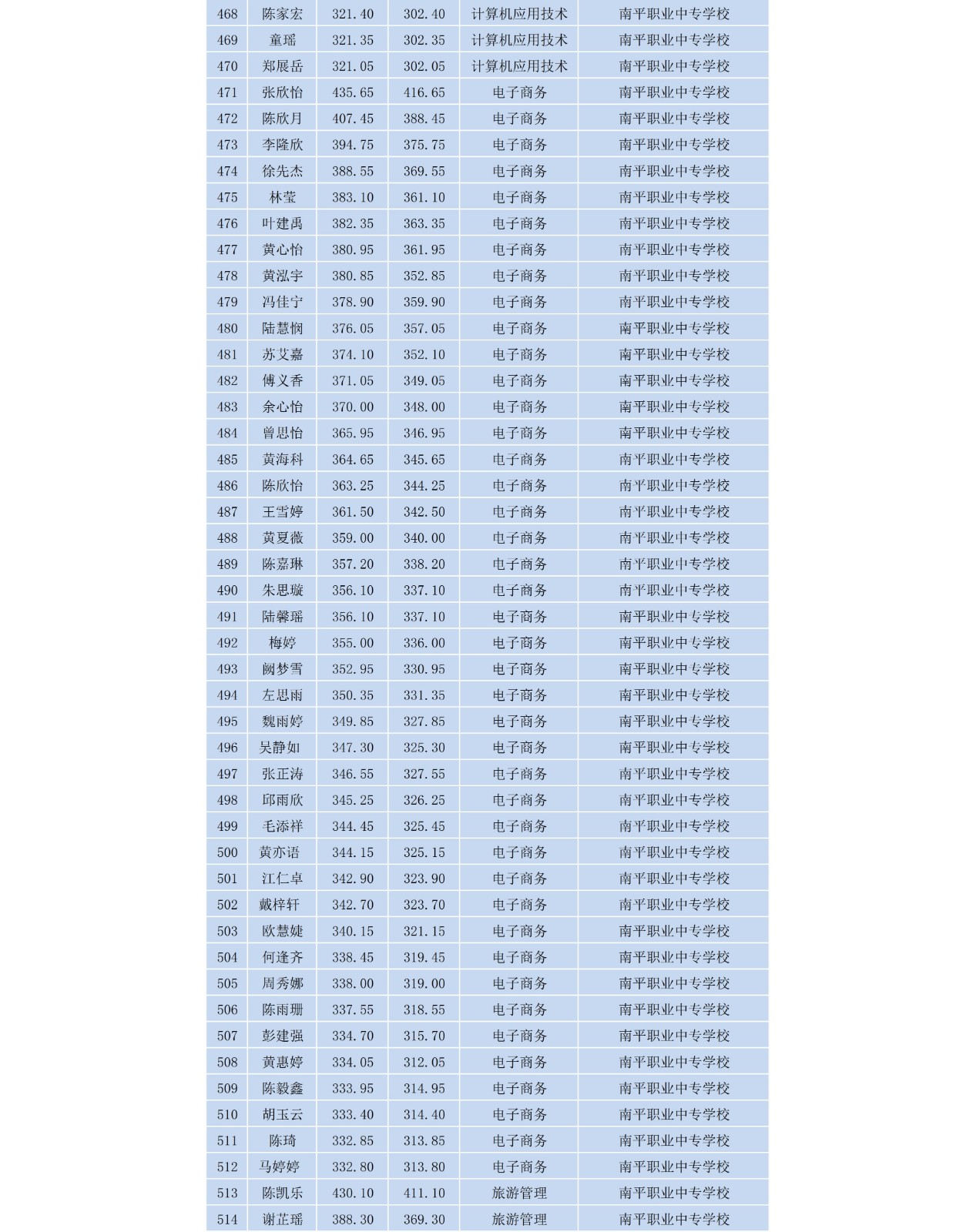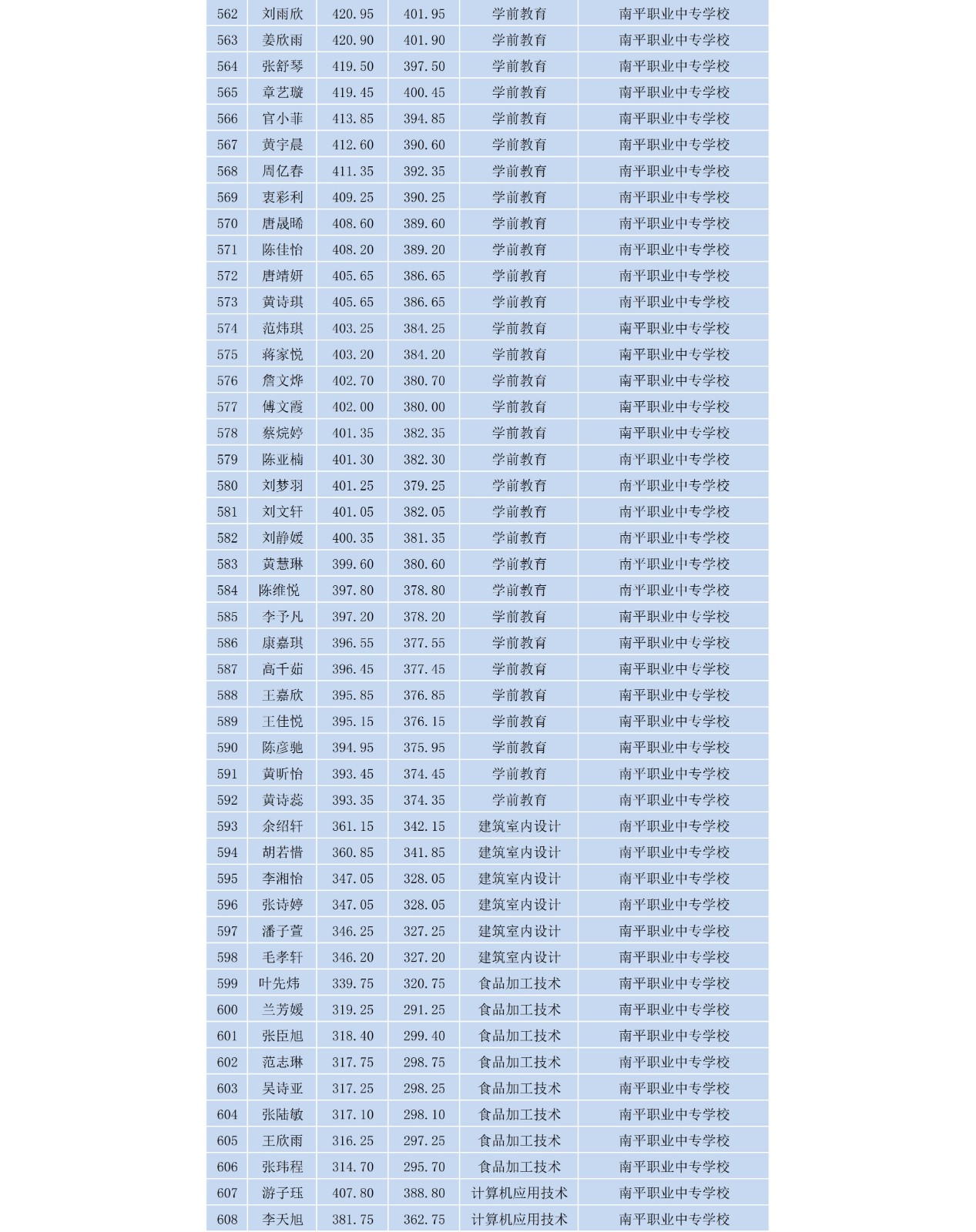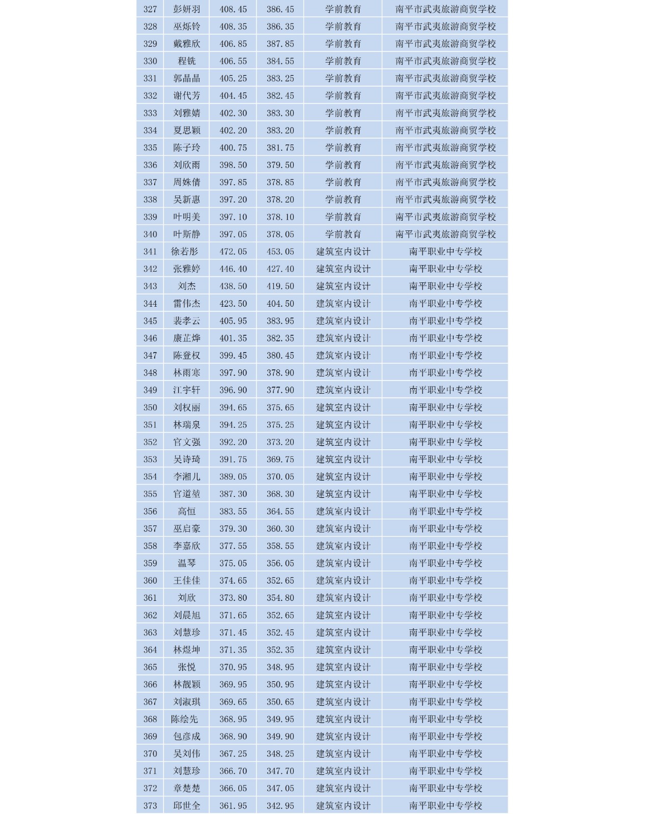 2020年采彡争霸五年制高等职业教育新生录取名单(南平地区)