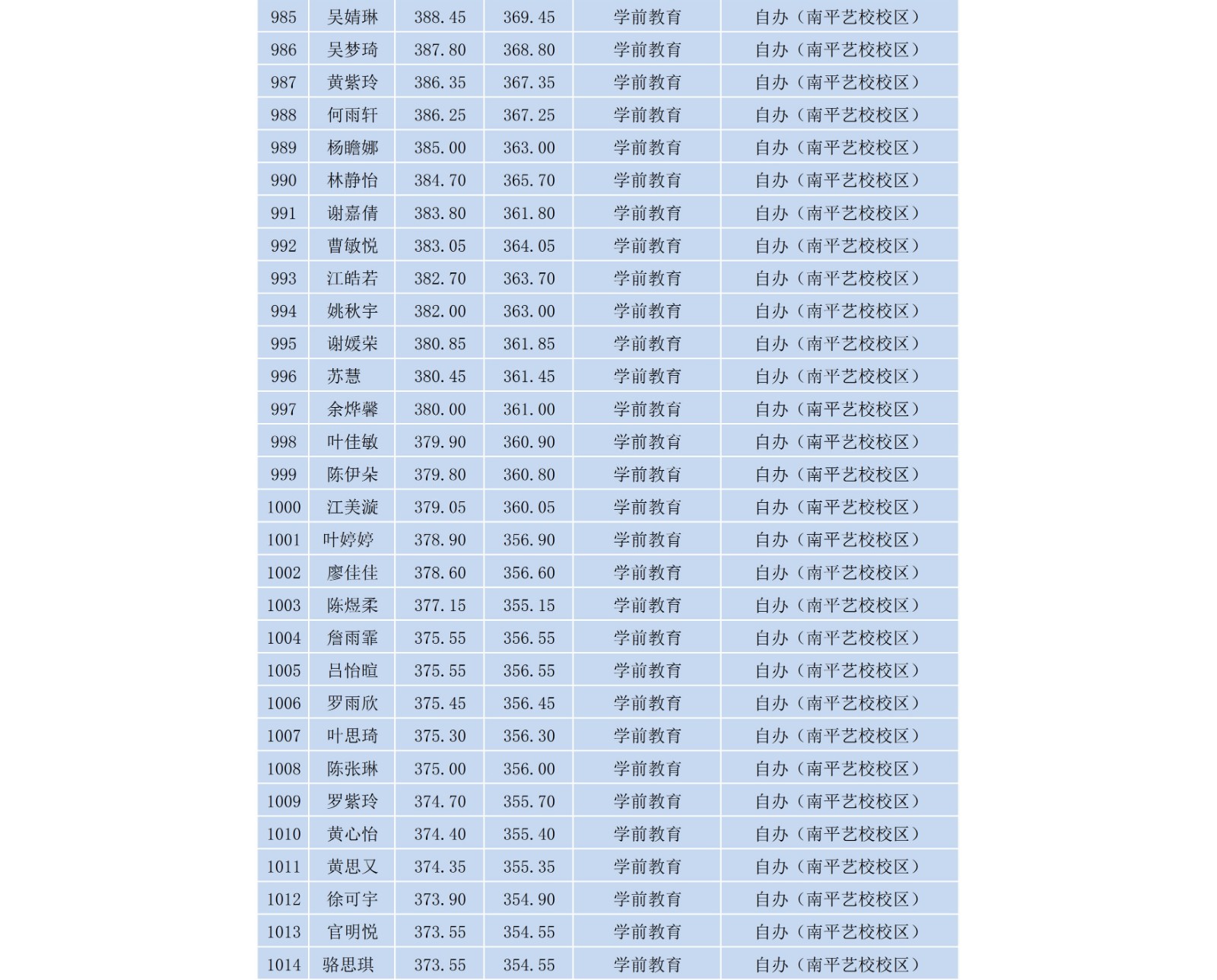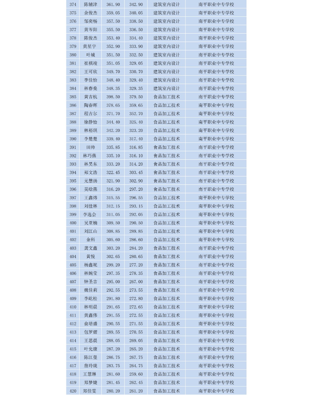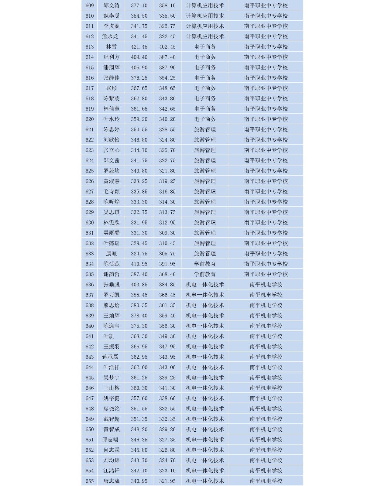 2020年采彡争霸五年制高等职业教育新生录取名单(南平地区)