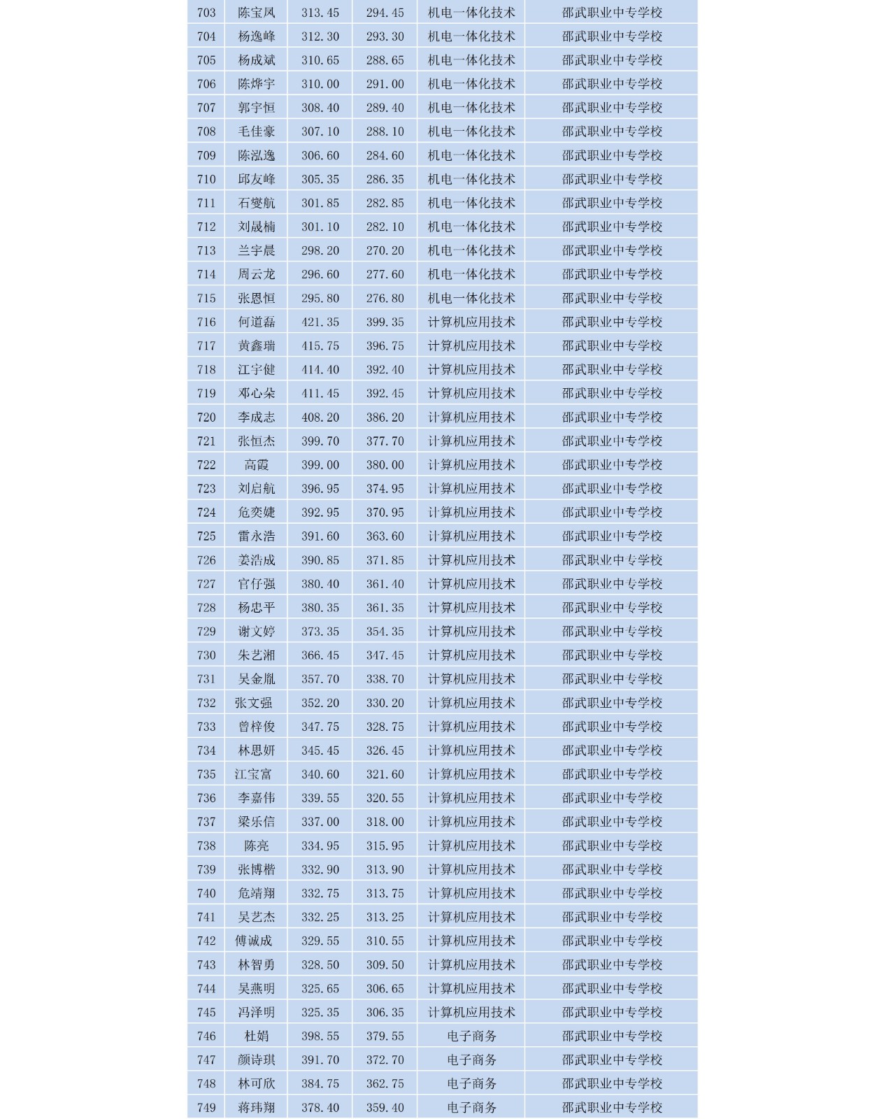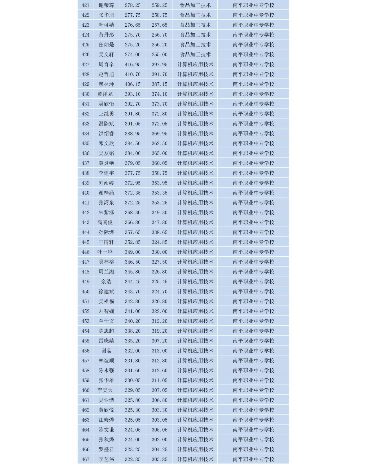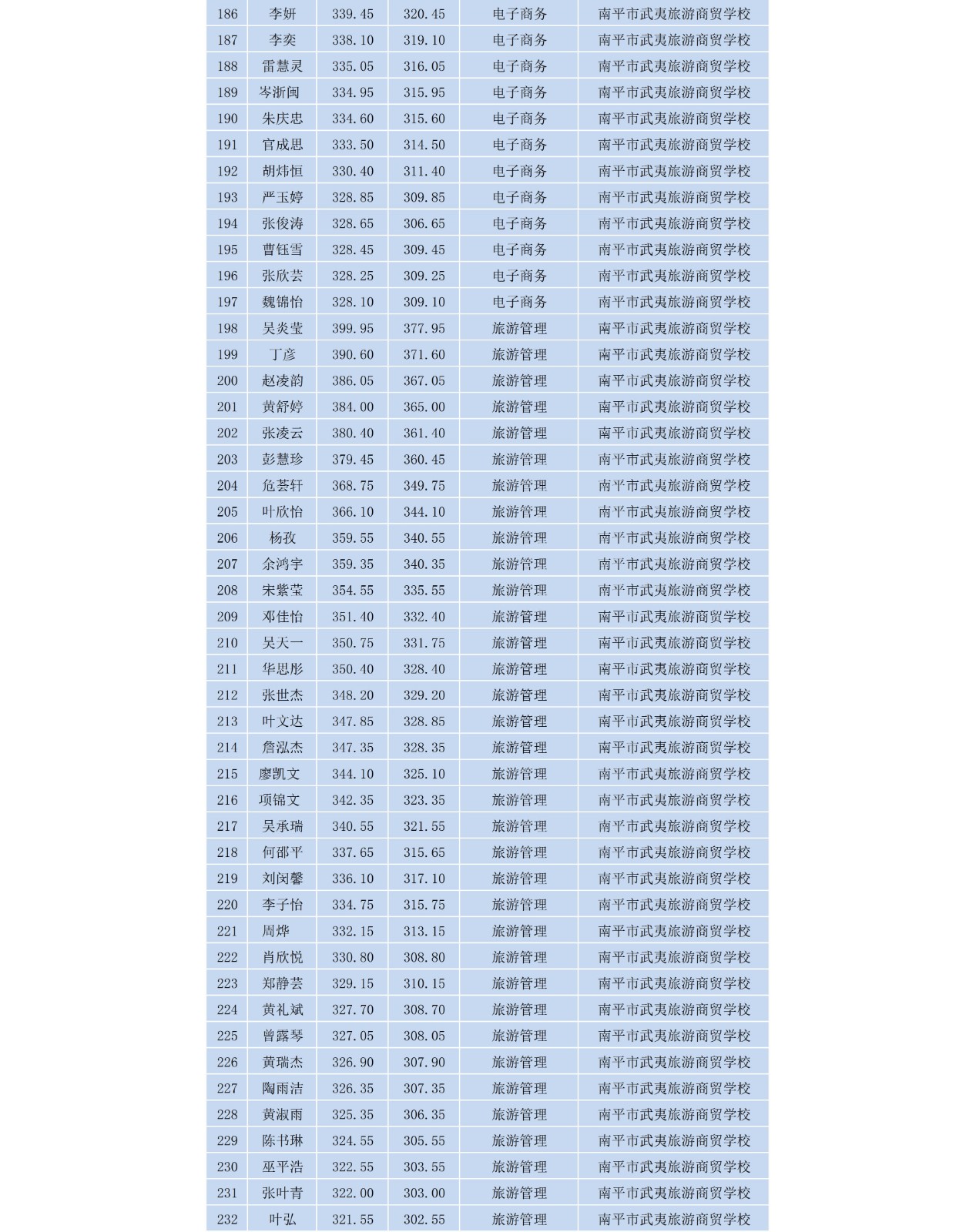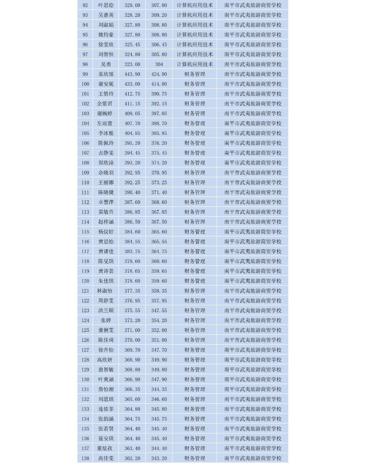 2020年采彡争霸五年制高等职业教育新生录取名单(南平地区)