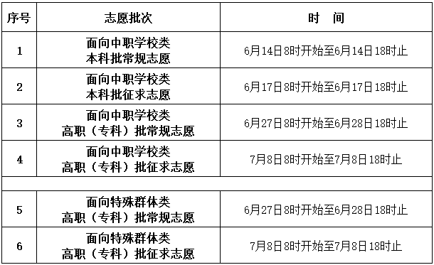 2022年高职分类招考志愿填报时间安排表(面向中职学校类和特殊群体类)