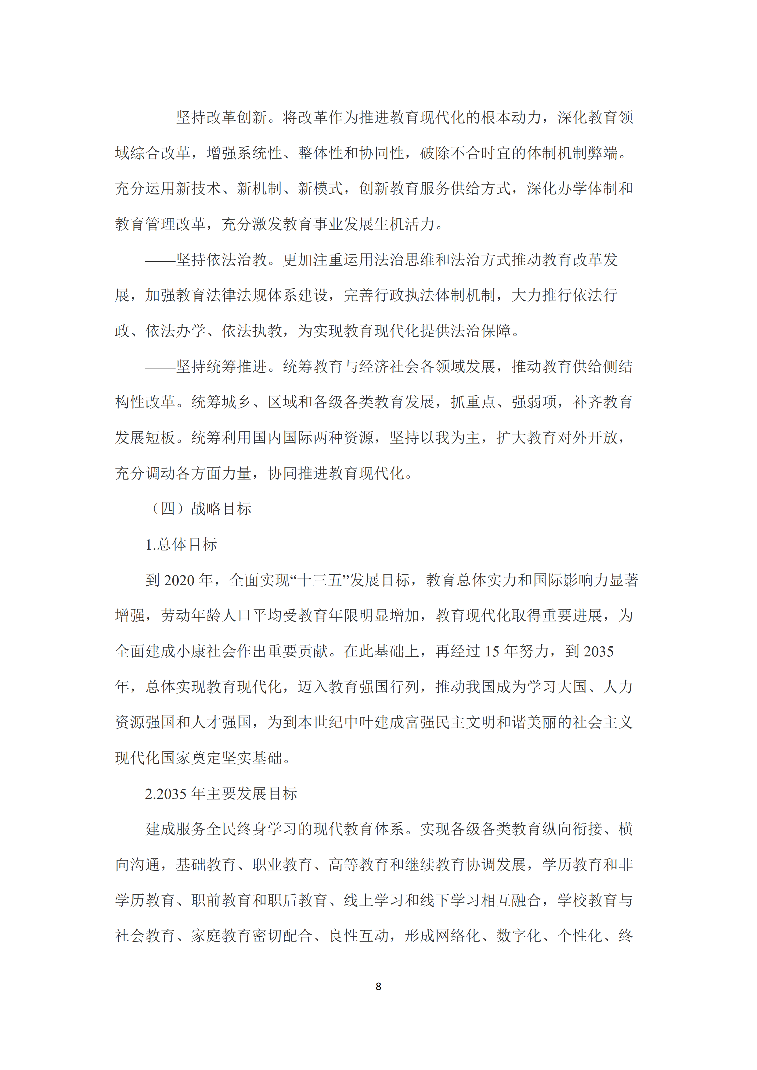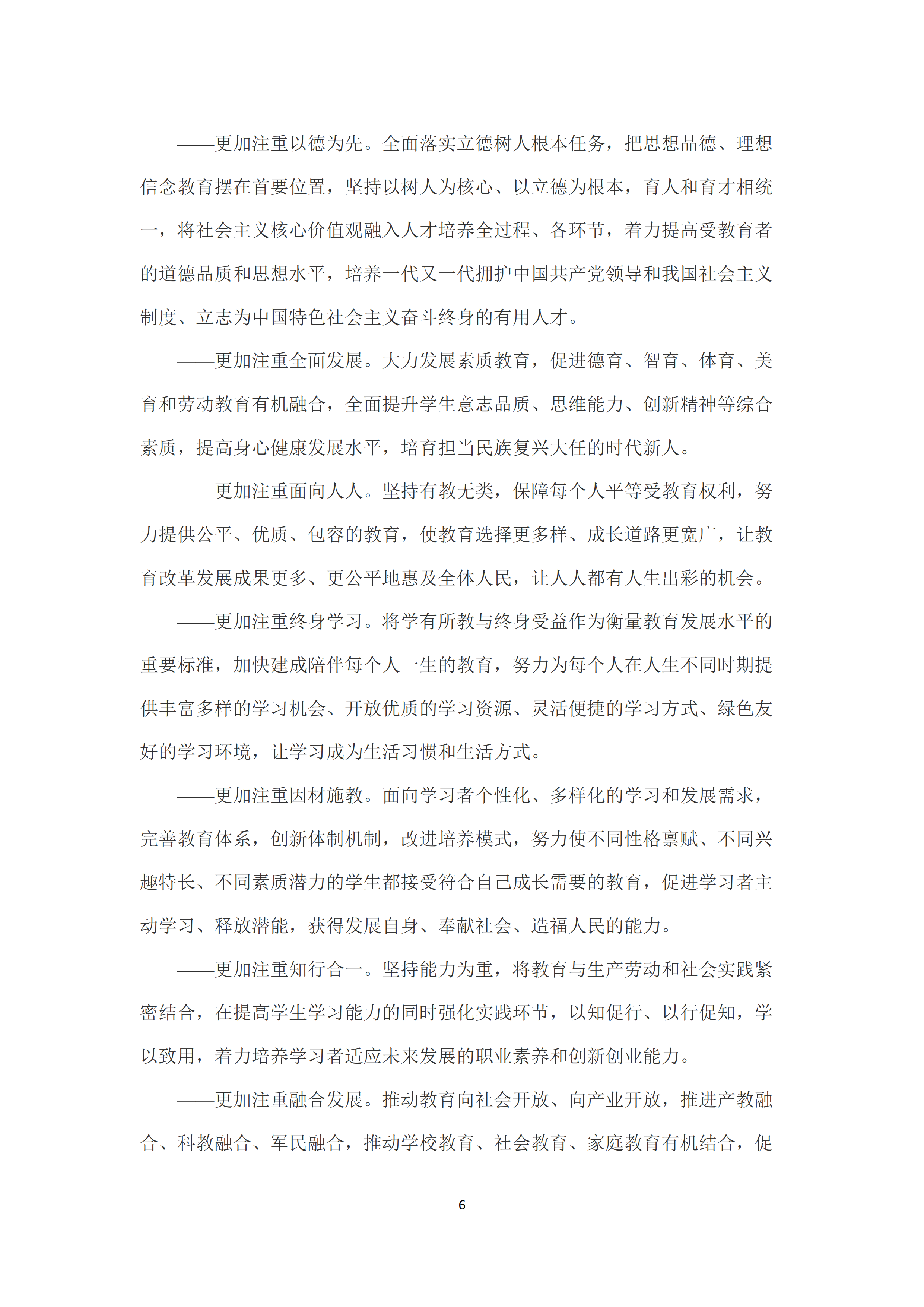 《中国教育现代化2035》提出了推进教育现代化的八大基本理念👨🦼➡️:更加注重以德为先,更加注重全面发展,更加注重面向人人💇🏼,更加注重终身学习,更加注重因材施教,更加注重知行合一🙎🏿♂️,更加注重融合发展,更加注重共建共享。明确了推进教育现代化的基本原则📃🦘:坚持党的领导、坚持中国特色𓀄、坚持优先发展🛋、坚持服务人民💆🏼♂️、坚持改革创新、坚持依法治教、坚持统筹推进🎦。
