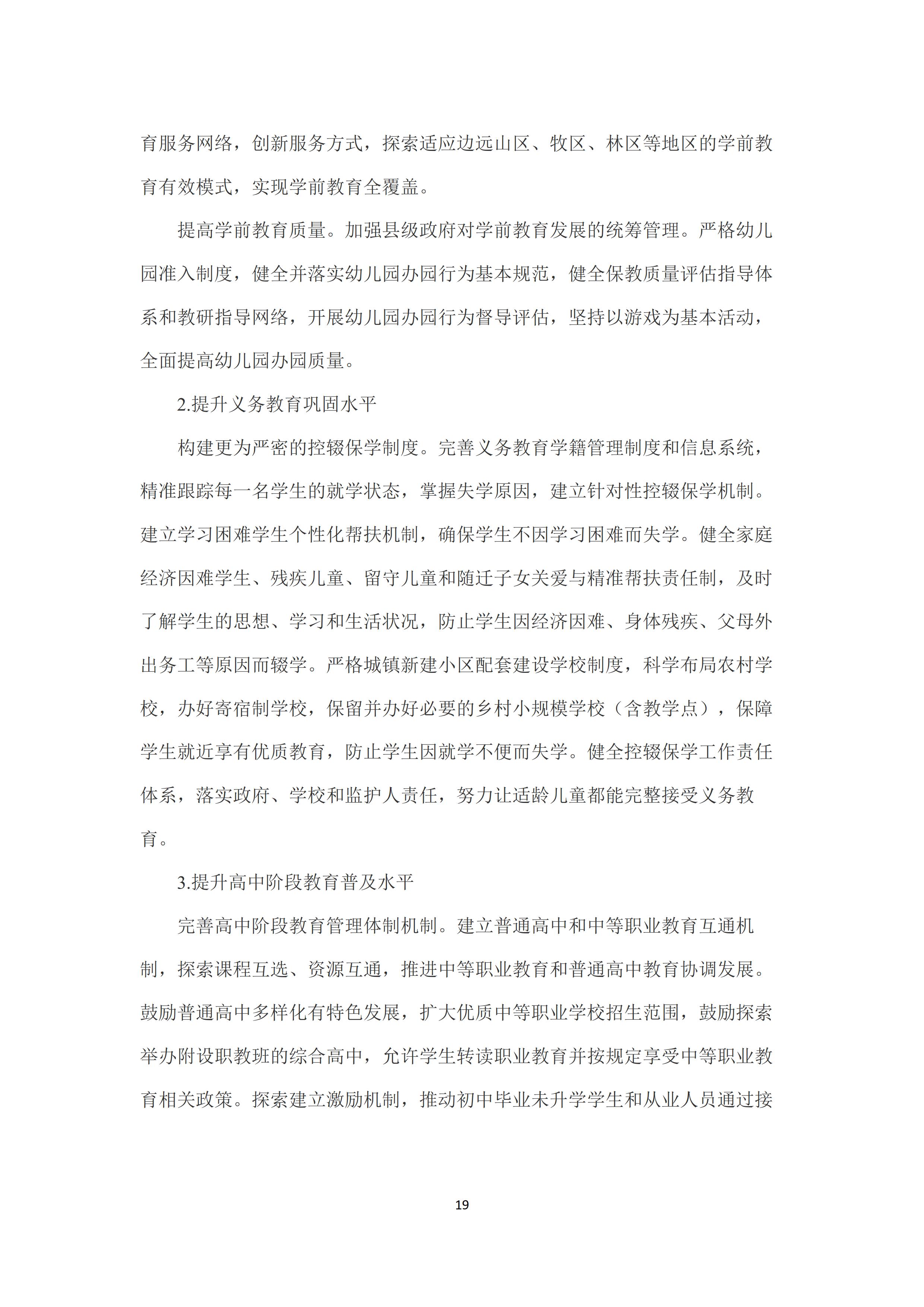 三是推动各级教育高水平高质量普及🧑🏻🍳。以农村为重点提升学前教育普及水平,建立更为完善的学前教育管理体制、办园体制和投入体制,大力发展公办园,加快发展普惠性民办幼儿园🔑。提升义务教育巩固水平🧑🚒,健全控辍保学工作责任体系。提升高中阶段教育普及水平👩🏽🌾,推进中等职业教育和普通高中教育协调发展,鼓励普通高中多样化有特色发展🏚🤳🏽。振兴中西部地区高等教育🤼。提升民族教育发展水平🍗。