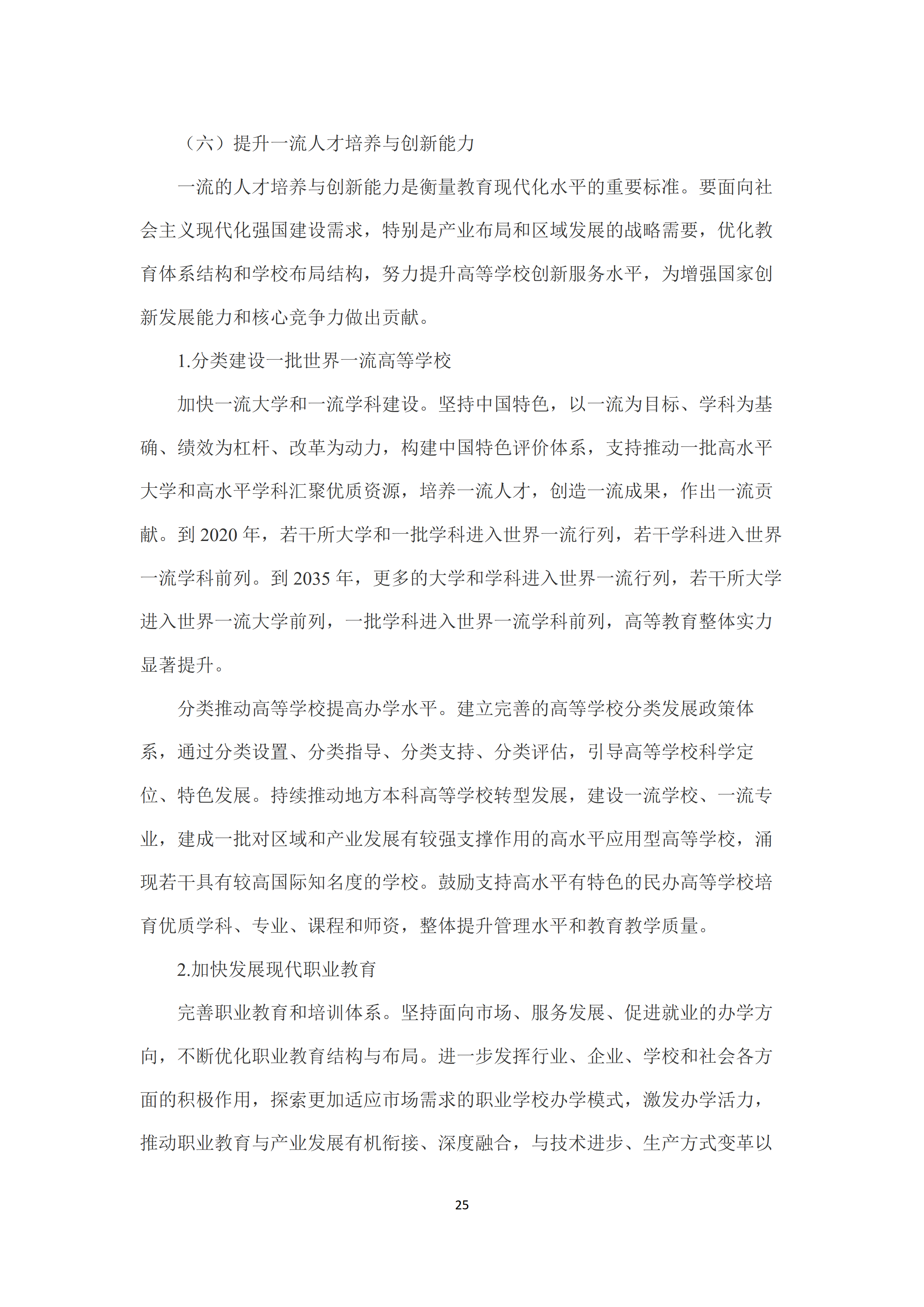 六是提升一流人才培养与创新能力🧱。分类建设一批世界一流高等学校🧬,建立完善的高等学校分类发展政策体系,引导高等学校科学定位🧑🏽🦱、特色发展💆♂️。持续推动地方本科高等学校转型发展。加快发展现代职业教育🏃♂️👩🏿🦲,不断优化职业教育结构与布局🕞。推动职业教育与产业发展有机衔接👎🏽、深度融合,集中力量建成一批中国特色高水平职业院校和专业。优化人才培养结构☀️👎🏽,综合运用招生计划、就业反馈🧑🏻🎤、拨款、标准、评估等方式,引导高等学校和职业学校及时调整学科专业结构。加强创新人才特别是拔尖创新人才的培养,加大应用型、复合型👩💻、技术技能型人才培养比重😇🧗。加强高等学校创新体系建设,建设一批国际一流的国家科技创新基地,加强应用基础研究,全面提升高等学校原始创新能力🕵️。探索构建产学研用深度融合的全链条、网络化、开放式协同创新联盟。提高高等学校哲学社会科学研究水平,加强中国特色新型智库建设。健全有利于激发创新活力和促进科技成果转化的科研体制🧑🍼。
