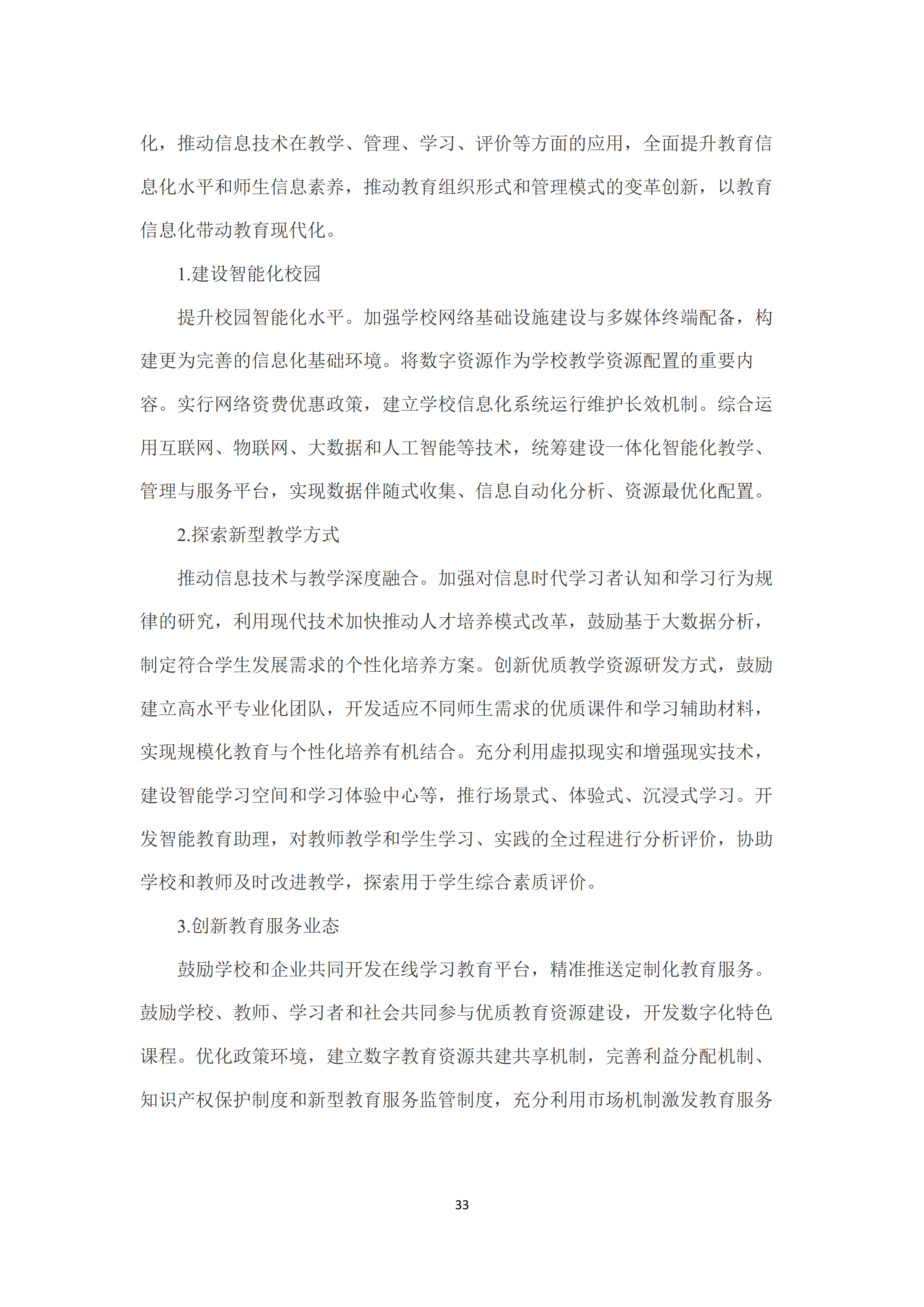 八是加快信息化时代教育变革🥁。建设智能化校园🦫,统筹建设一体化智能化教学✌🏼、管理与服务平台。利用现代技术加快推动人才培养模式改革👩❤️👨,实现规模化教育与个性化培养的有机结合。创新教育服务业态🫶🏼🙋🏻♂️,建立数字教育资源共建共享机制👩🏼🦰,完善利益分配机制🧑🏻🦽➡️、知识产权保护制度和新型教育服务监管制度。推进教育治理方式变革,加快形成现代化的教育管理与监测体系,推进管理精准化和决策科学化👨🏽🏫。