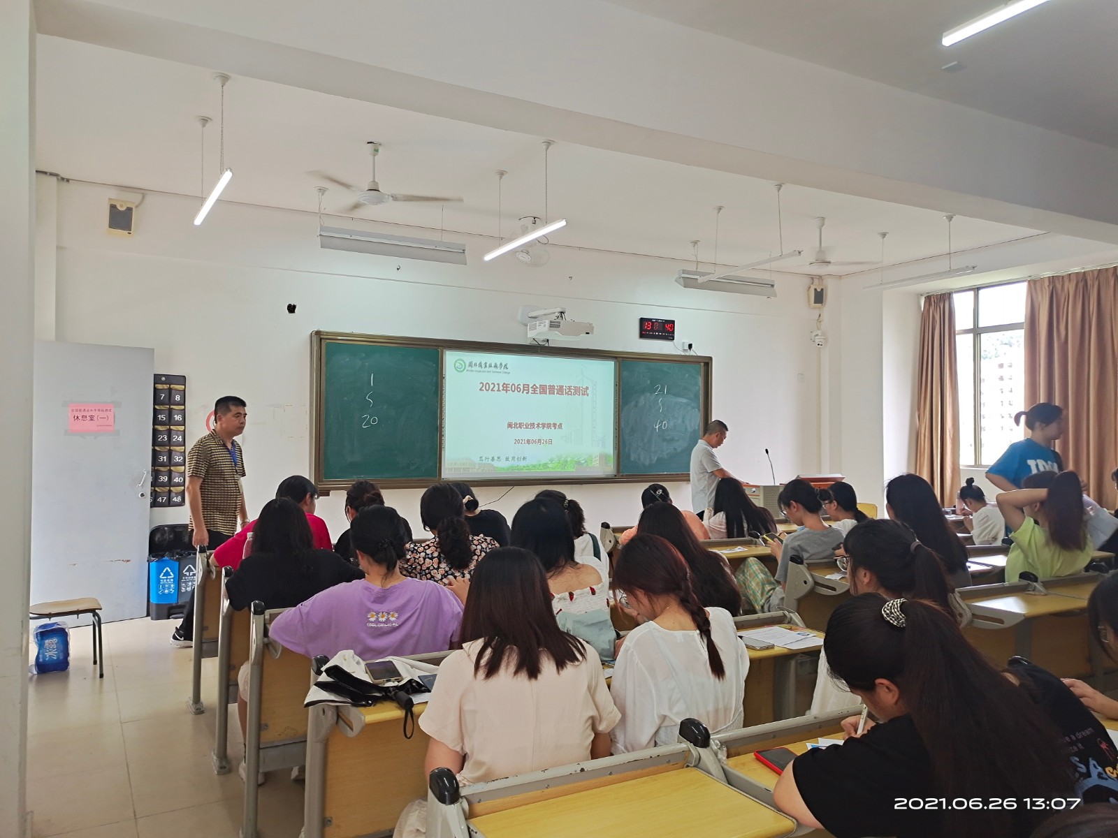 2021626日至27日,国家普通话水平培训与测试于我校普通话培训测试点举办。我校设有4个考室分多个批次,共1107名在校学生报名参加了考试🐒,本次考试井然有秩,纪律严明。